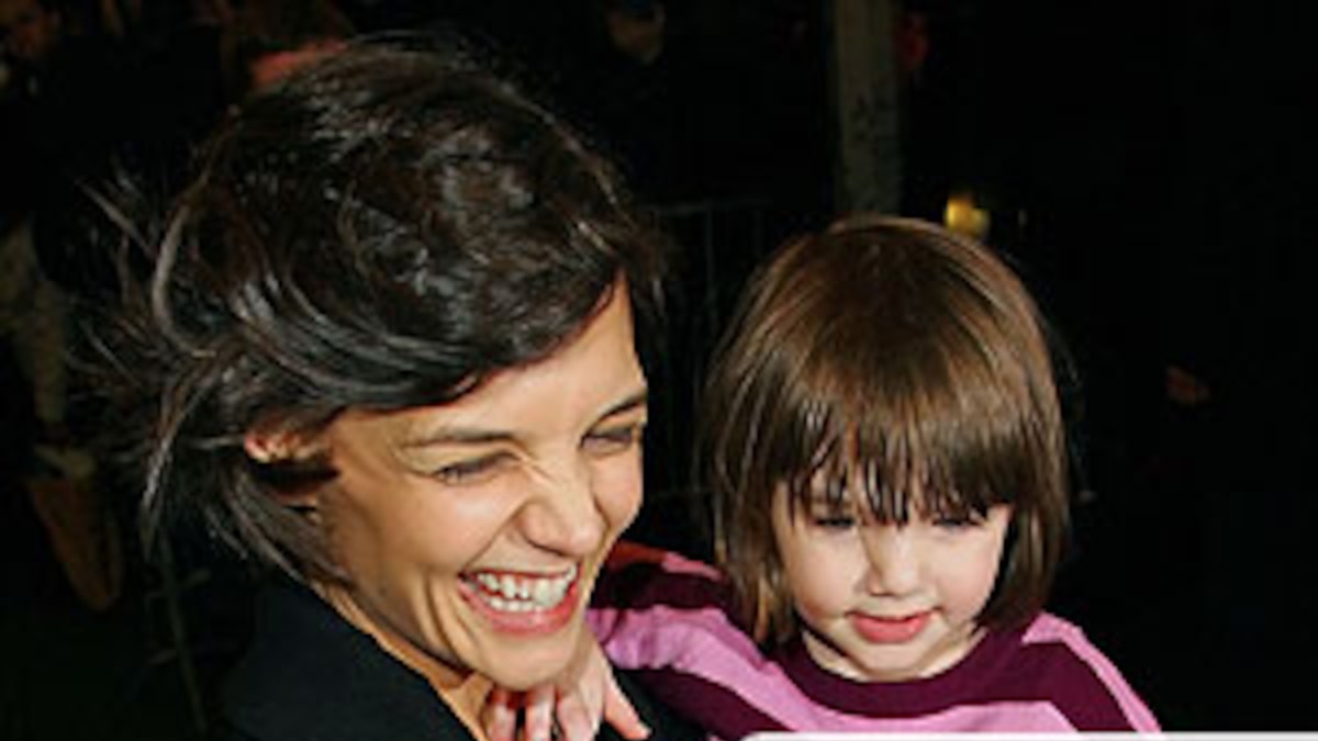 Actress Katie Holmes and baby Suri stopped to sign autographs outside of the Schoenfeld Theatre on Broadway, where Holmes is performing in "All My Sons."