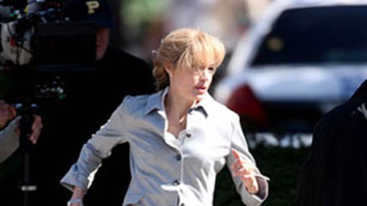Call it blonde ambition! A golden-haired Angelina Jolie hoofed it through the capital today on the set of "Salt."