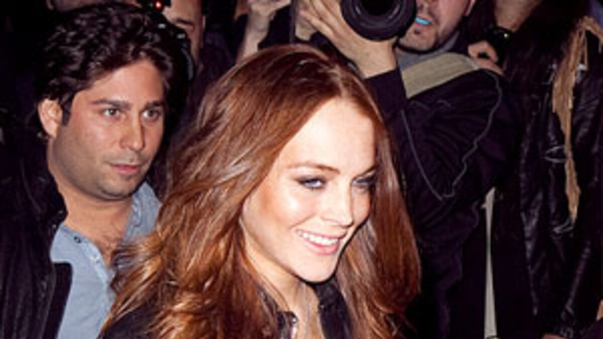 Fiery starlet Lindsay Lohan grins as she pushes through a crowd of fans and shutterbugs in Montreal, signing a few autographs before heading into a nightclub.
