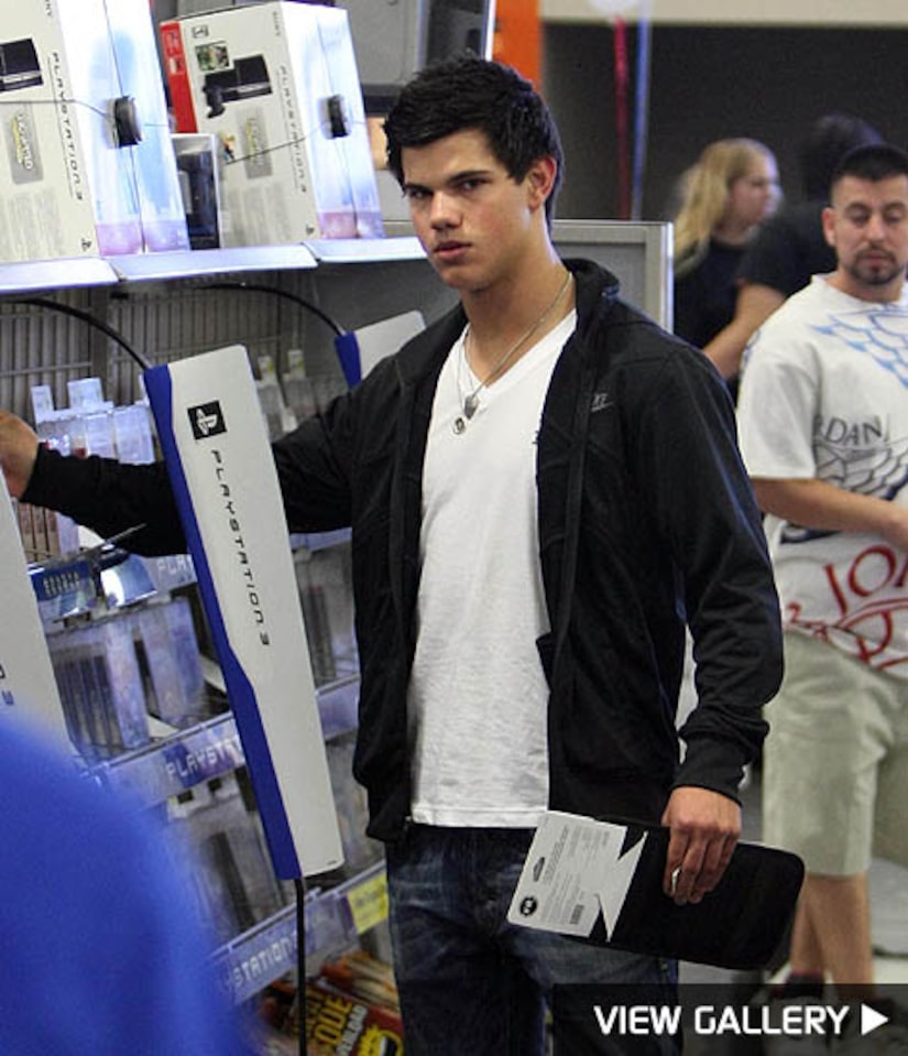 "New Moon" werewolf Taylor Lautner peruses the DVD section at an L.A. Best Buy before deciding on one new movie for his collection.