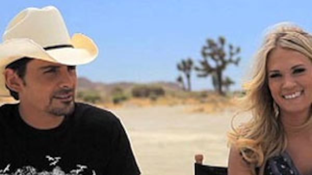 In the video, the singing duo walk slowly across a blazing desert toward each other; Underwood in a sexy, flowy dress and heels; Paisley in a rugged cowboy hat, carrying his guitar. Paisley said, "I always said I'm never gonna do one of those cliché desert videos."