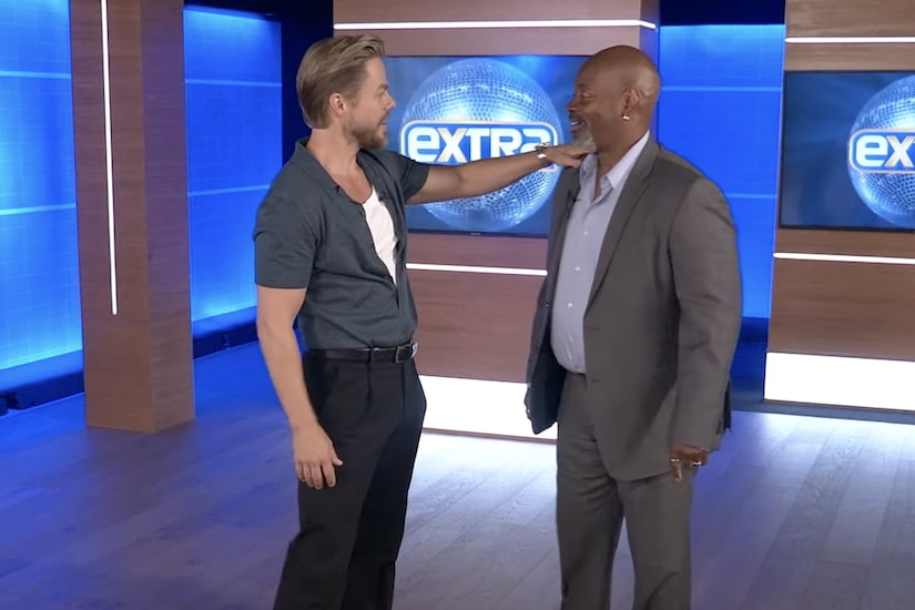 On Derek Hough’s first day hosting “Extra,” the team pulled off an epic surprise by bringing in his first dance teacher, Rick Robinson!