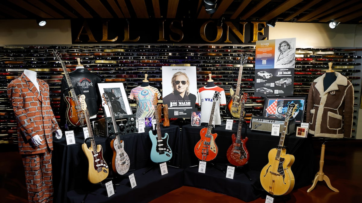 Some items included in the auction are 800 guitars, cars, and amps.