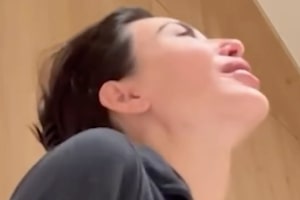 In the videos, North wears a gray miniskirt, white T-shirt, and black fur boots.