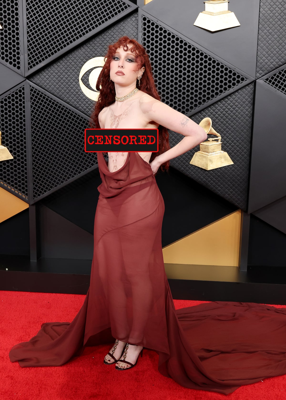 Chappell’s look, however, may have been a bit deceiving. According to People magazine the dress featured an invisible bodice with faux nipples.