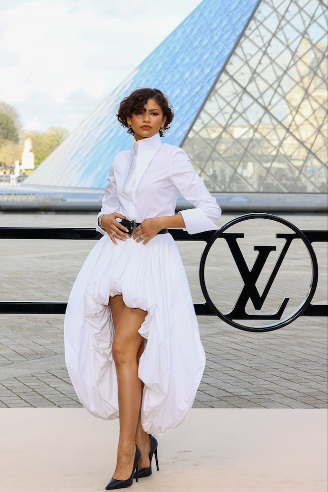 Zendaya Wears Bridal White & Gold Band at Paris Fashion Week
