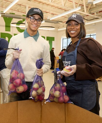 Ego Nwodim and Jaden Michael volunteered with Feeding America and City Harvest at the organization’s Food ...