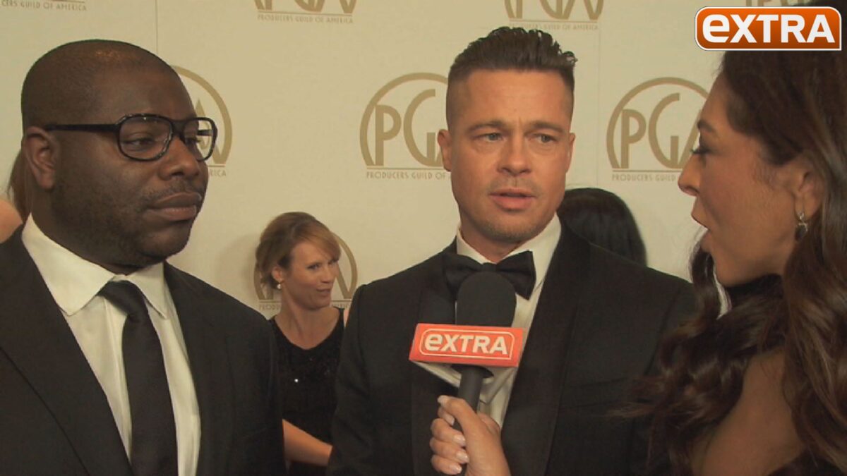 “Extra’s” Terri Seymour caught up with Brad Pitt at the Producers Guild Awards on Sunday, where the actor lavished praised on Lupita Nyong'o’s film debut in “12 Years a Slave.” The two were joined by the film's director, Steve McQueen.