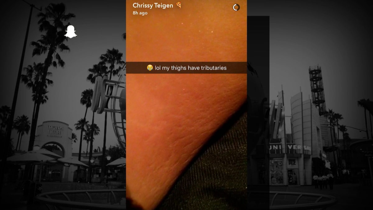 Teigen took to Snapchat to zoom in on her stretch marks, which is a common issues for moms. She jokingly captioned the video, “lol my thighs have tributaries.”